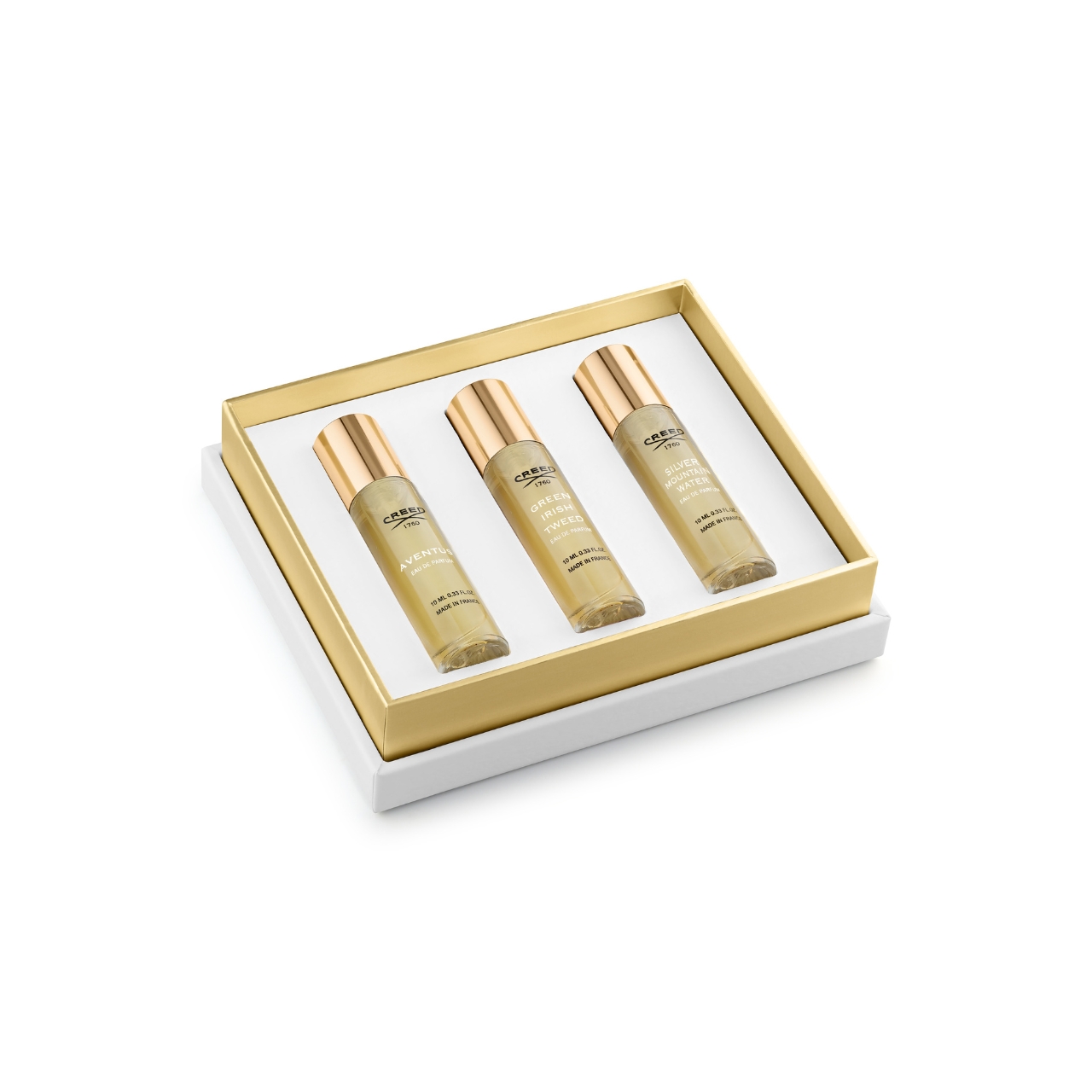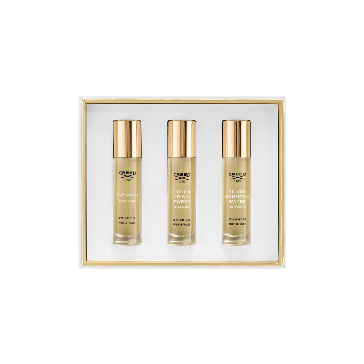 Questo set regalo da uomo composto in edizione limitata riunisce tre celebri fragranze da 10ml della Maison Creed: Aventus, Green Irish Tweed e Silver Mountain Water. Ciascuna è presentata in una raffinata edizione da 10 ml. Racchiuso in una raffinata confezione verde smeraldo ispirata all'audace eleganza del design Art Déco, questo set regalo è espressione di maestria artigianale e intenzionalità ed è pensato per essere il regalo più memorabile.